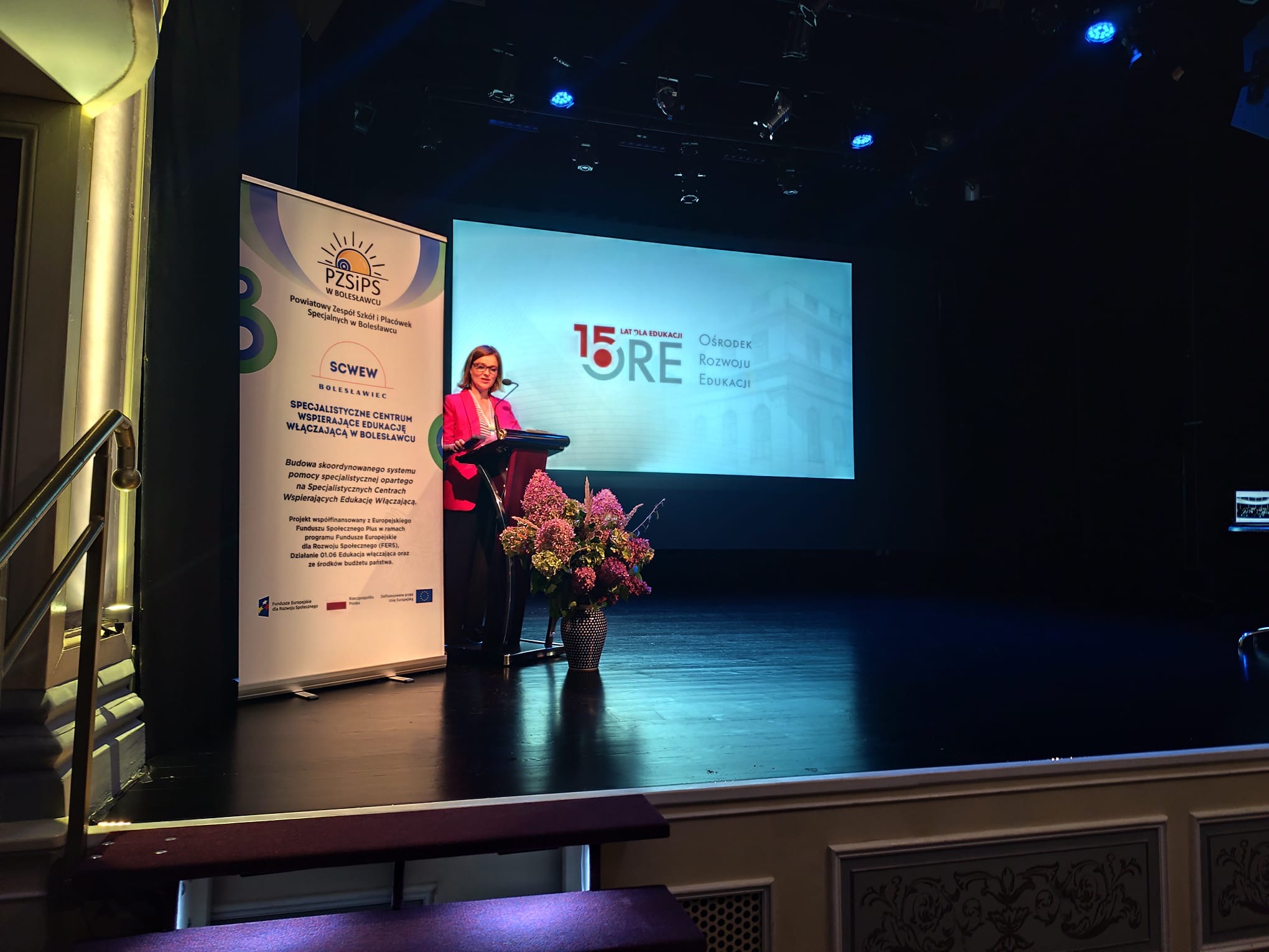 Pani Laura Słocka lider SCWEW podziękowała wszystkim uczestnikom za obecność, zaangażowanie i wymianę doświadczeń. Szczególne podziękowania skierowała do prelegentów, którzy swoimi interesującymi wystąpieniami podzielili się cenną wiedzą i inspirującymi przykładami dobrych praktyk. „Państwa profesjonalizm i pasja są najlepszym dowodem na to, że współpraca i otwartość na potrzeby drugiego człowieka stanowią fundament edukacji włączającej”. Wyrazy uznania przekazała również do Pana Starosty Bolesławieckiego Tomasza Gabrysiaka oraz Pani Naczelnik Wydziału Edukacji, Kultury i Sportu Pani Katarzyny Zięby za wsparcie i życzliwość, a także do przedstawicieli Ośrodka Rozwoju Edukacji, dzięki któremu można sprawnie realizować projekt SCWEW.